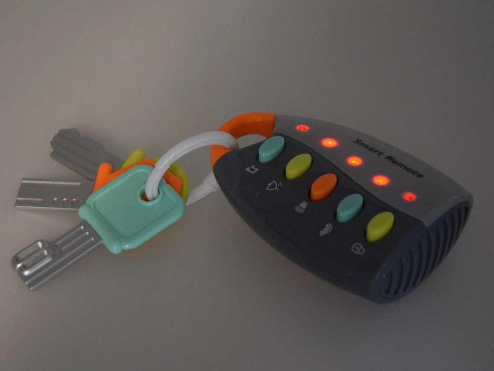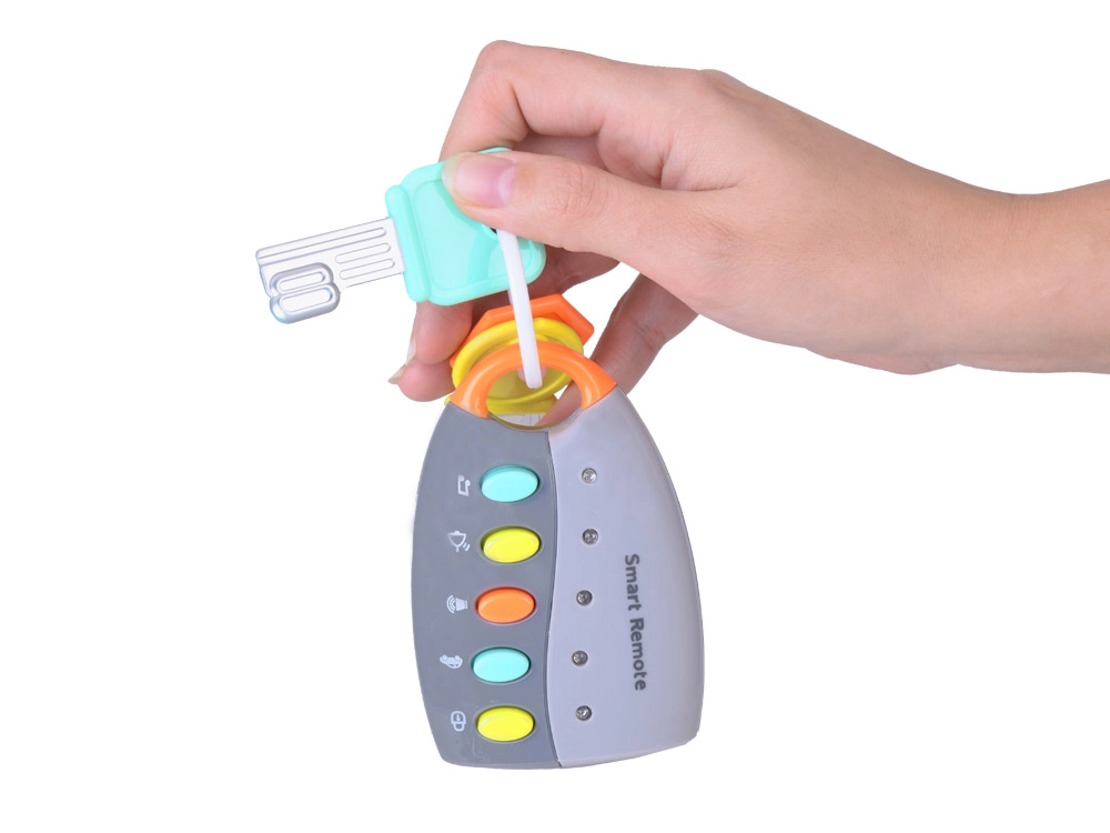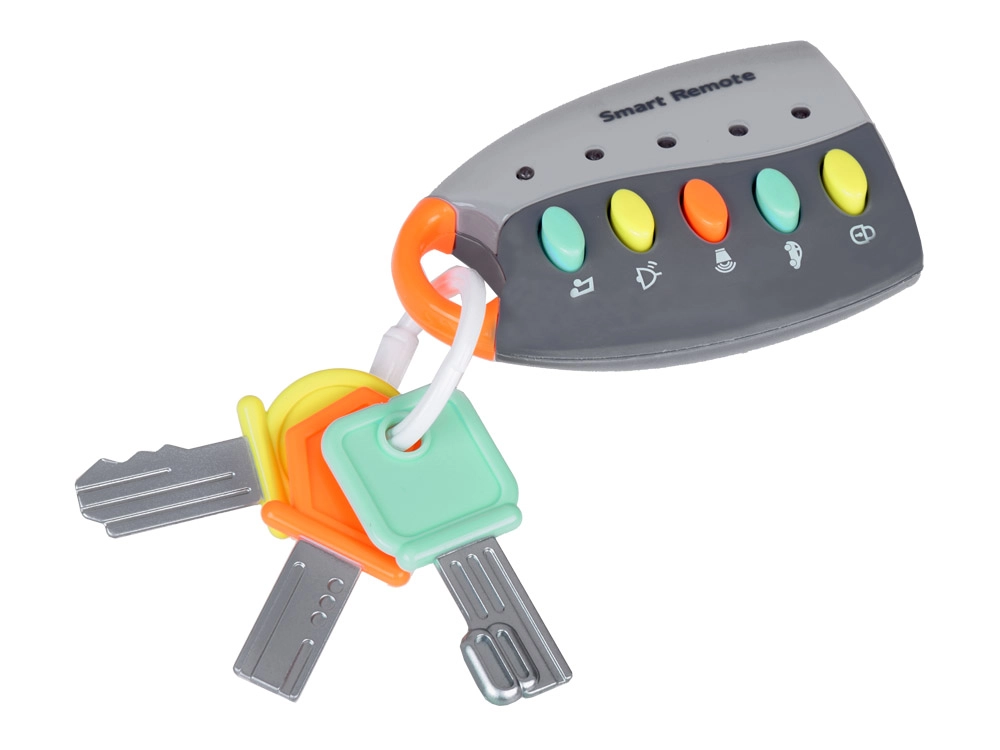 Vaikai mėgsta mėgdžioti suaugusiuosius – su šiais interaktyviais raktais jie patirs daug saugaus ir lavinančio žaidimo. Nuotolinio valdymo pultelis su spalvotais mygtukais groja linksmų melodijų ir autentiškų automobilio garsų, kuriuos papildo mirksinčios švieselės. Žaislas lengvas, patogus laikyti ir paprastai valomas.