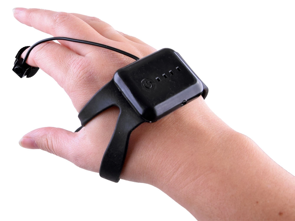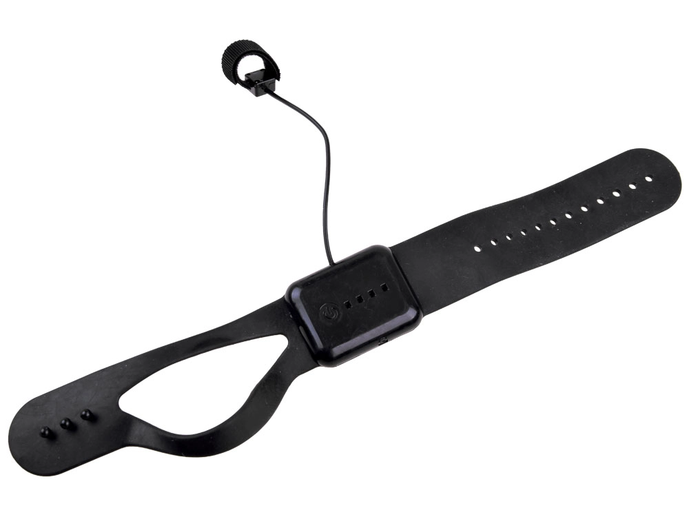 Apyrankinis valdiklis su patogiu silikoniniu dirželiu ir starto/tūpimo mygtuku leidžia valdyti skrydžio kryptį švelniais rankos judesiais – lengvai ir intuityviai.