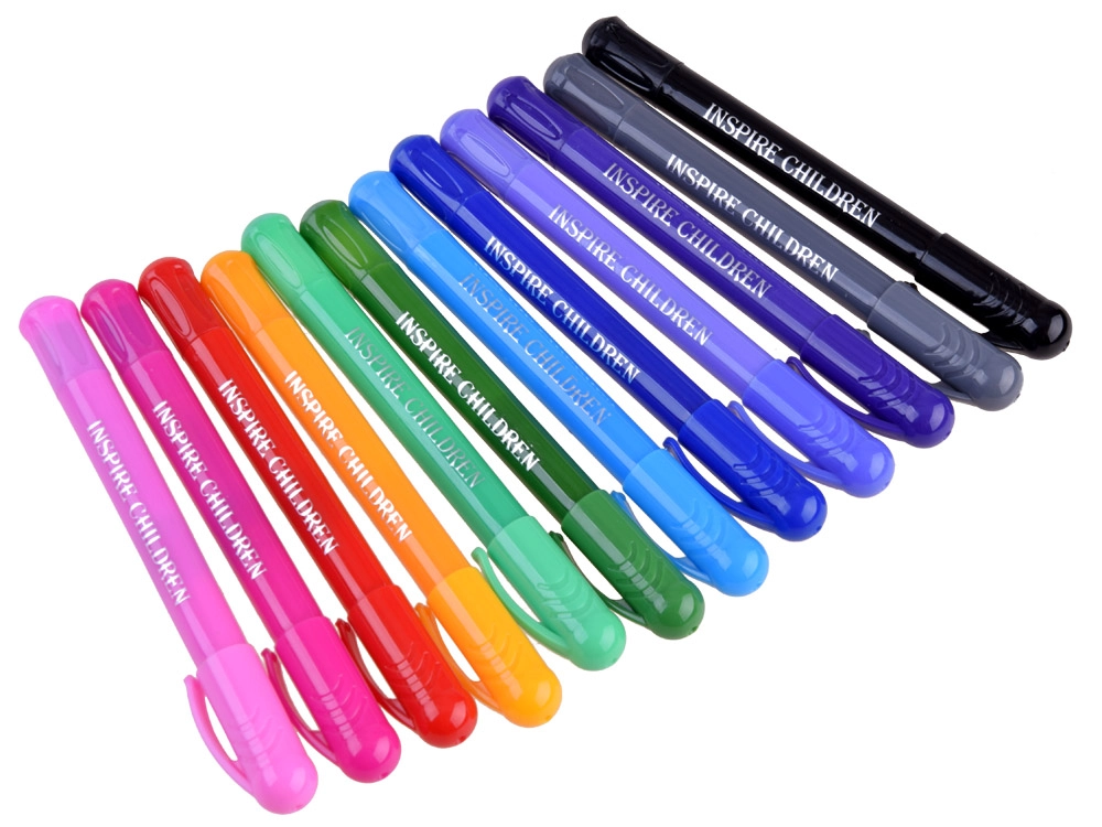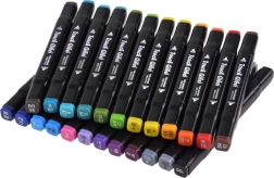 - Viskas viename: 24 stori flomasteriai, 12 plonų žymeklių, 8 pieštukai, 12 akvarelinių dažų, 2 teptukai ir 1 spalvinimo knygelė.