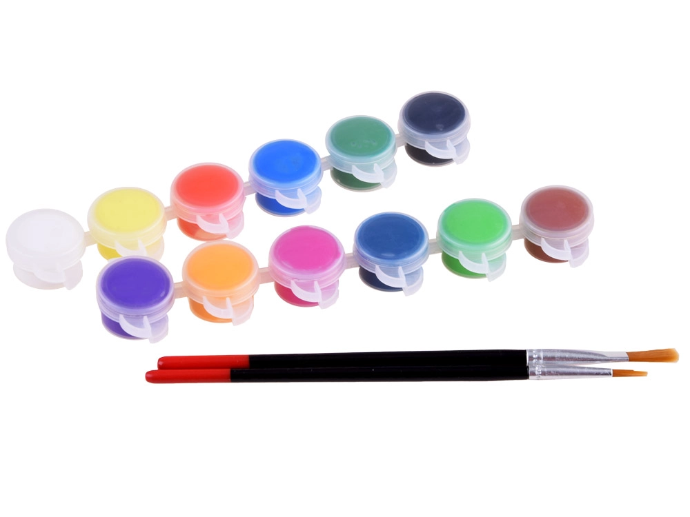 - 24 stori flomasteriai, 12 plonų žymeklių, 8 pieštukai, 12 akvarelinių dažų, 2 teptukai, 1 spalvinimo knygelė