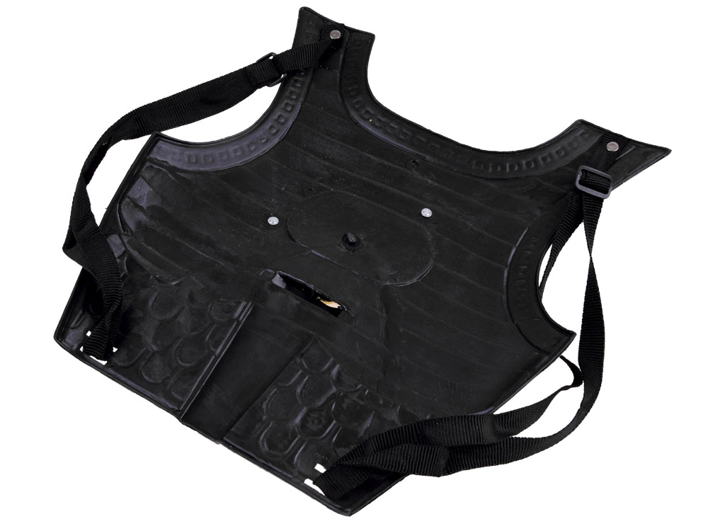Lengvas krūtinės šarvų plokštės elementas su reguliuojamais dirželiais puikiai priglunda ir suteikia kiekvienam mažajam riteriui ryžto ir stiliaus.