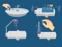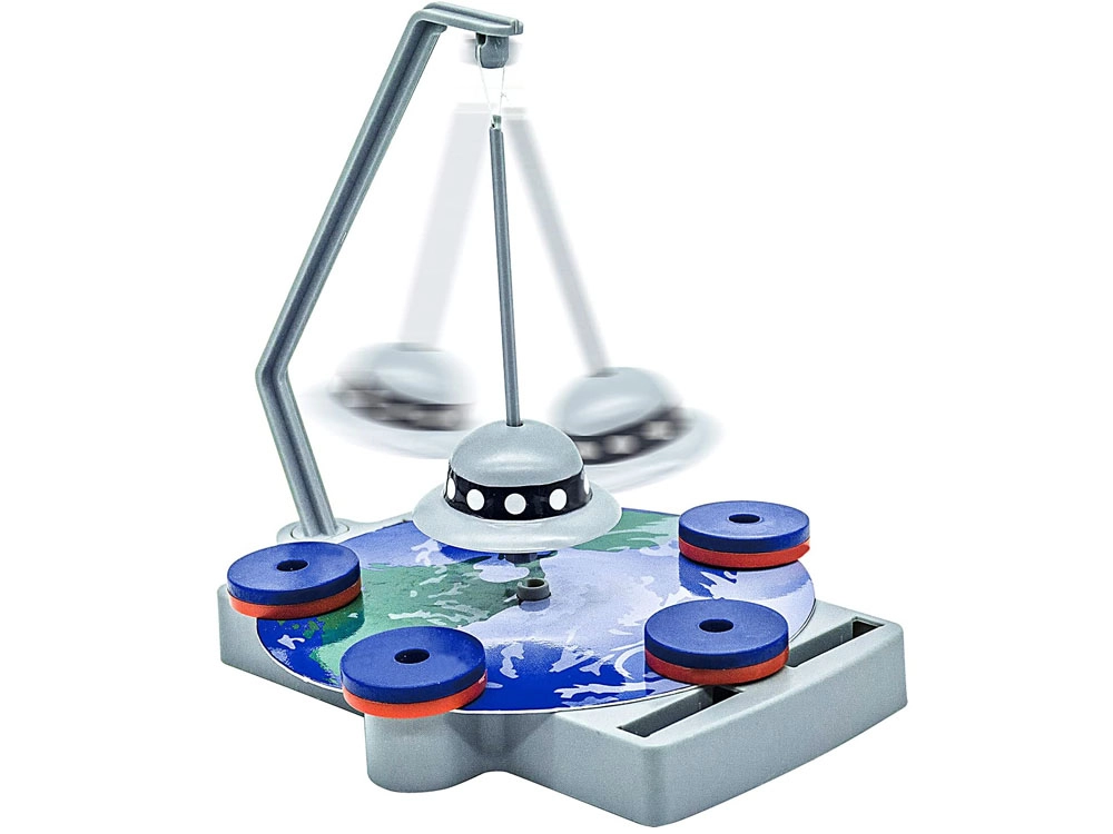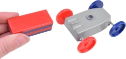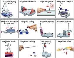 Surenkamas vežimėlis, besisukantys diskai ir kiti mechaniniai elementai parodo magnetinę jėgą judesyje ir motyvuoja atlikti daugiau bandymų.