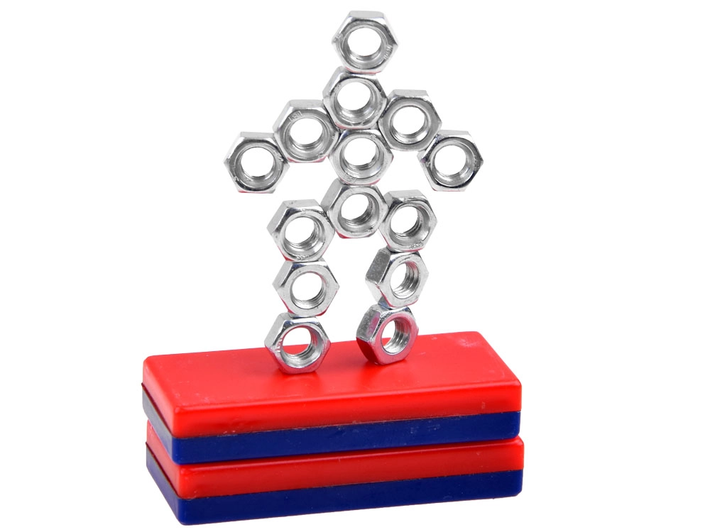Kurkite figūrėles ir formas iš metalinių veržlių, pritvirtintų prie magnetinių strypų – smagus magneto jėgos ir pusiausvyros pademonstravimas.