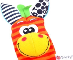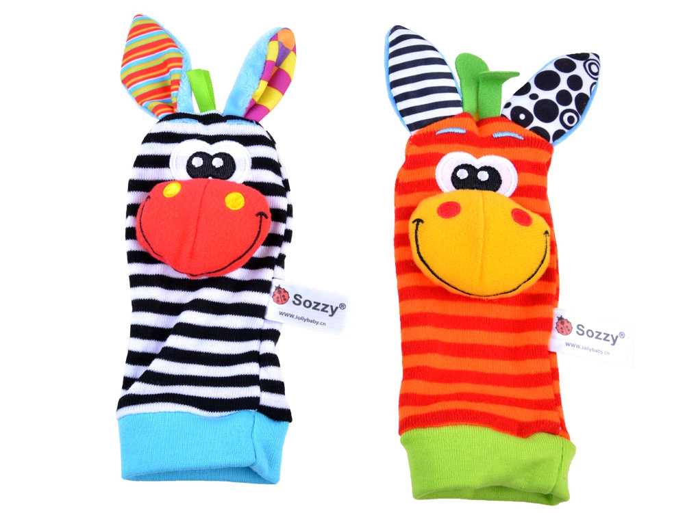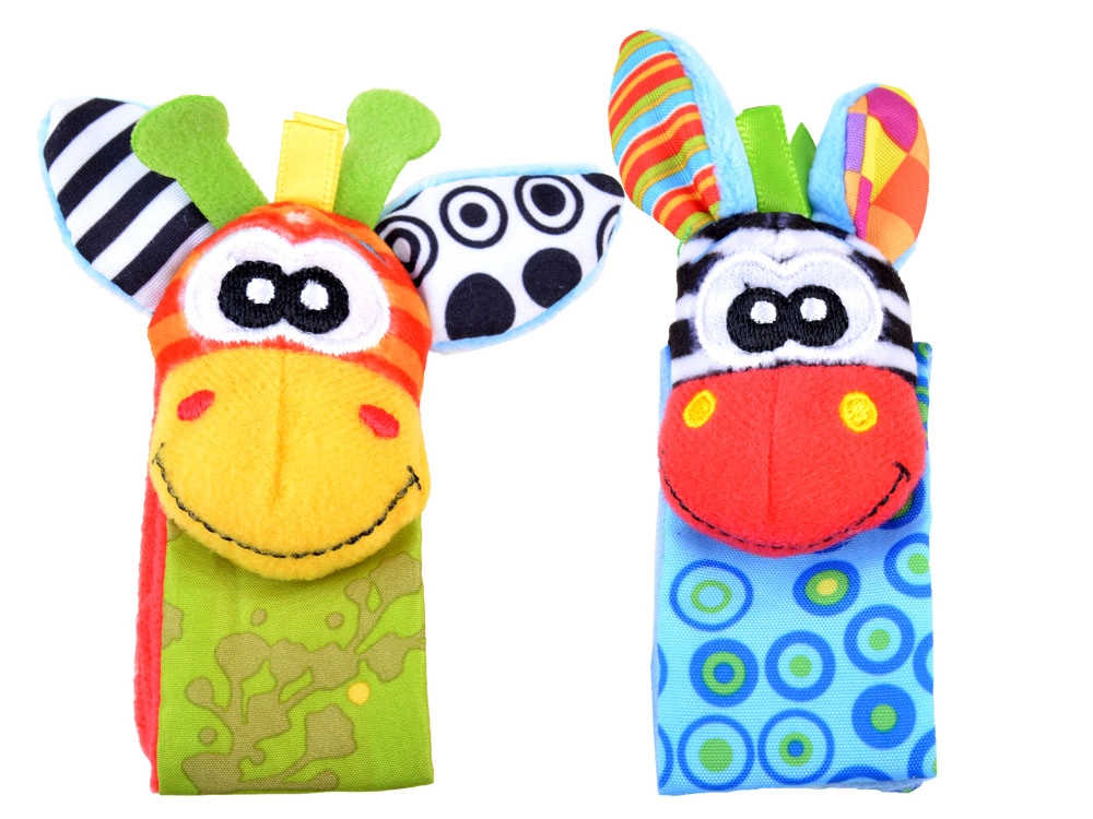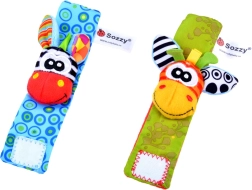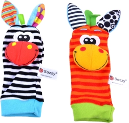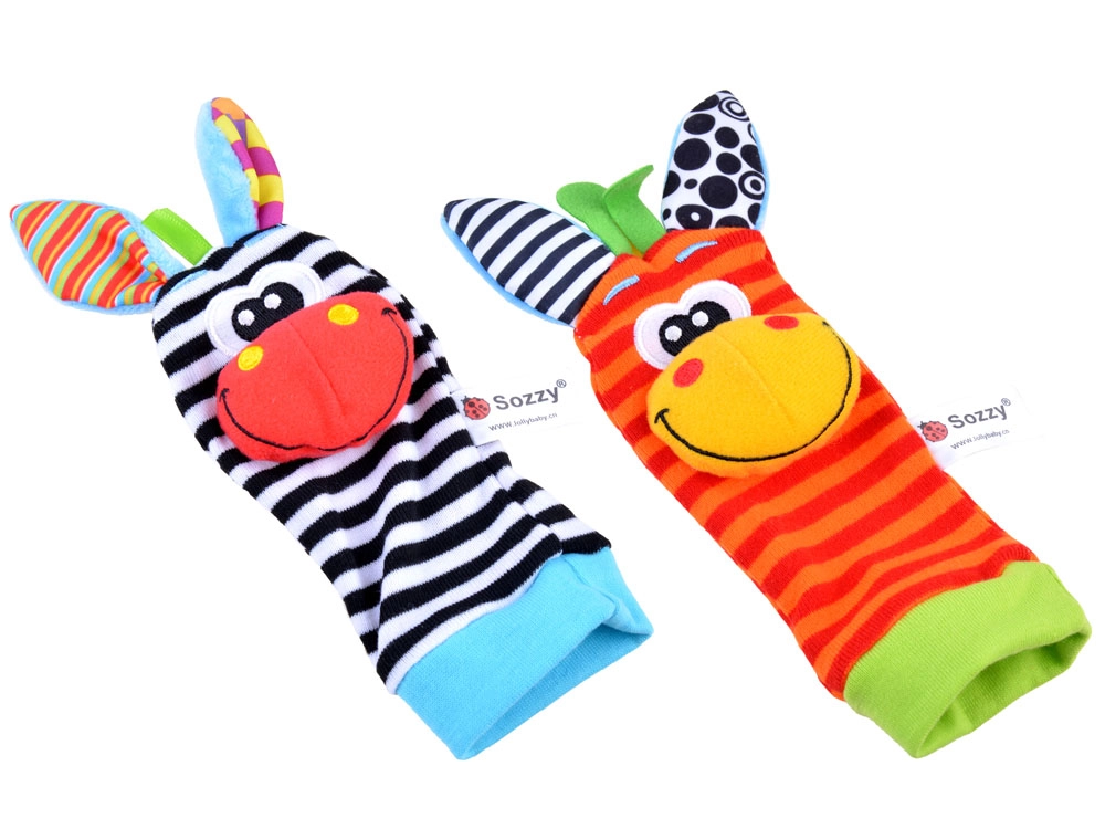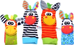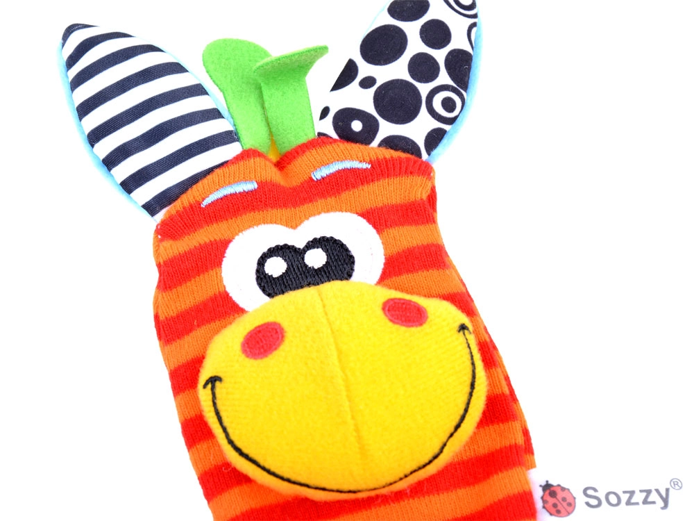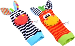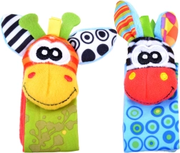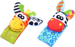 Kojinytės barška ir kartu šildo, riešo dirželiai lengvai pritvirtinami dėl lipduko ir gerai laikosi net aktyviai judant. Siuvinėti gyvūnėlių veidukai yra visiškai saugūs, be smulkių dalių. Žaislus galima skalbti, tad juos lengva palaikyti švarius – puikus pasirinkimas kasdieniam žaidimui ir kaip dovana naujagimiui.