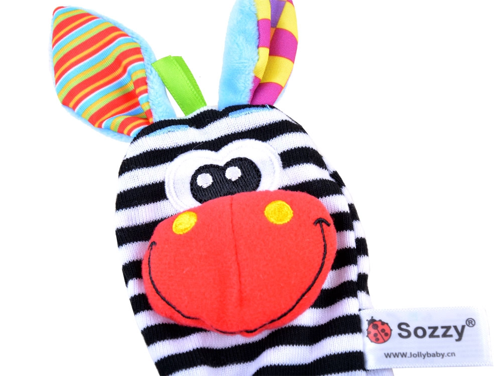 Kontrastinės spalvos, švelnus varpelio skambėjimas ir čežančios ausytės padeda lavinti regą, klausą ir lytėjimą bei skatina kūdikį judėti.