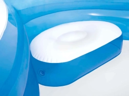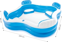 Praktiški 2 gėrimų laikikliai užtikrina, kad gaivieji gėrimai visada būtų po ranka, o išleidimo vožtuvas palengvina greitą vandens išleidimą. Baseiną lengva pernešti, jis greitai prisipučia, o 229 × 229 × 69 cm matmenys suteikia pakankamai vietos poilsiui ir žaidimams.