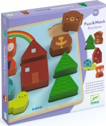 DJECO Puzz & Match Vaivorykštė – sumanus 1 dėlionės ir 1 konstravimo žaidimo derinys. Vaikai gali dėlioti poras į gražius gyvūnus ir motyvus arba, vadovaudamiesi fantazija, laisvai derinti detales ir kurti naujus personažus bei raštus. Tvirta konstrukcija idealiai tinka mažoms rankytėms ir saugiam žaidimui namuose.