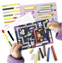 Skaičiavimas su kaladėlėmis iš EDUCA – ideali priemonė priešmokyklinukams ir jaunesniems mokyklinio amžiaus vaikams. Vaikai dėlioja ir lygina kaladėles, sprendžia užduotis veiklų lentelėse ir natūraliai įsisavina pagrindines matematines sąvokas – nuo skaičiavimo ir rūšiavimo iki ryšių tarp skaičių ir dydžių.