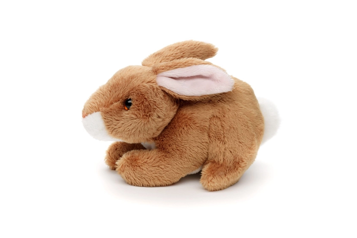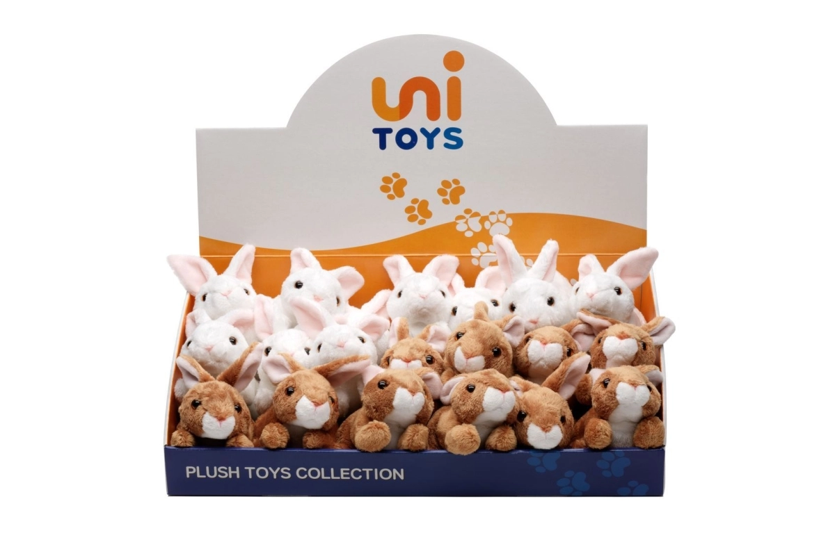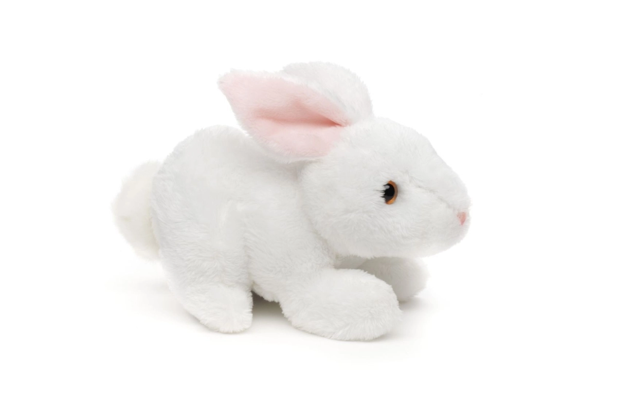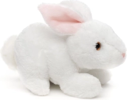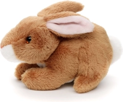 Maždaug 15 x 9 x 8 cm dydžio šį pliušinį triušiuką mažiems vaikams lengva suimti.