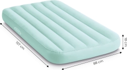 Pripučiama čiužinys INTEX, kurios matmenys 157x88x18 cm, sukurta patogiam vieno žmogaus miegui. Vaikams ji patiks dėl malonaus mėlyno dizaino ir vandeniui atsparaus veliūro medžiagos, kuri maloni liesti. Čiužinys aprūpintas Dura-Beam ir Fiber-Tech technologijomis, kurios užtikrina tvirtumą ir taisyklingą svorio paskirstymą sveikam miegui.