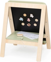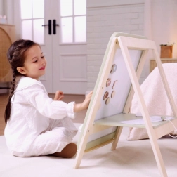 Medinė PolarB lenta yra puikus įrankis mažiesiems menininkams, skatinantis jų kūrybišką žaidimą ir smulkiosios motorikos įgūdžių lavinimą. Lenta turi dvi puses – klasikinę juodą kreidinei rašysenai ir baltą magnetinį sausai nuvalomą paviršių. Dėl reguliuojamo aukščio ji prisitaiko prie vaiko augimo, užtikrindama patogų naudojimą skirtingais raidos etapais.