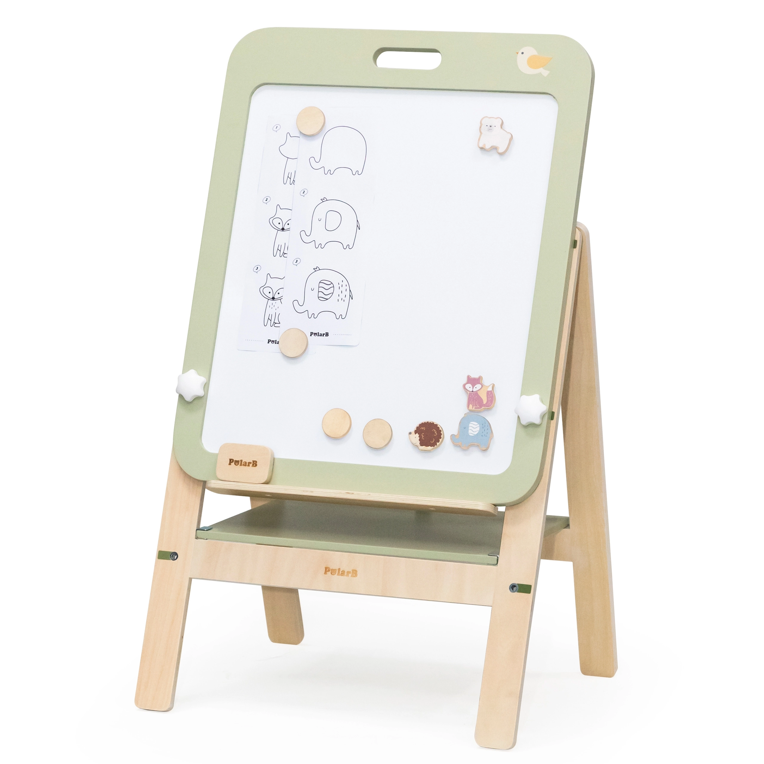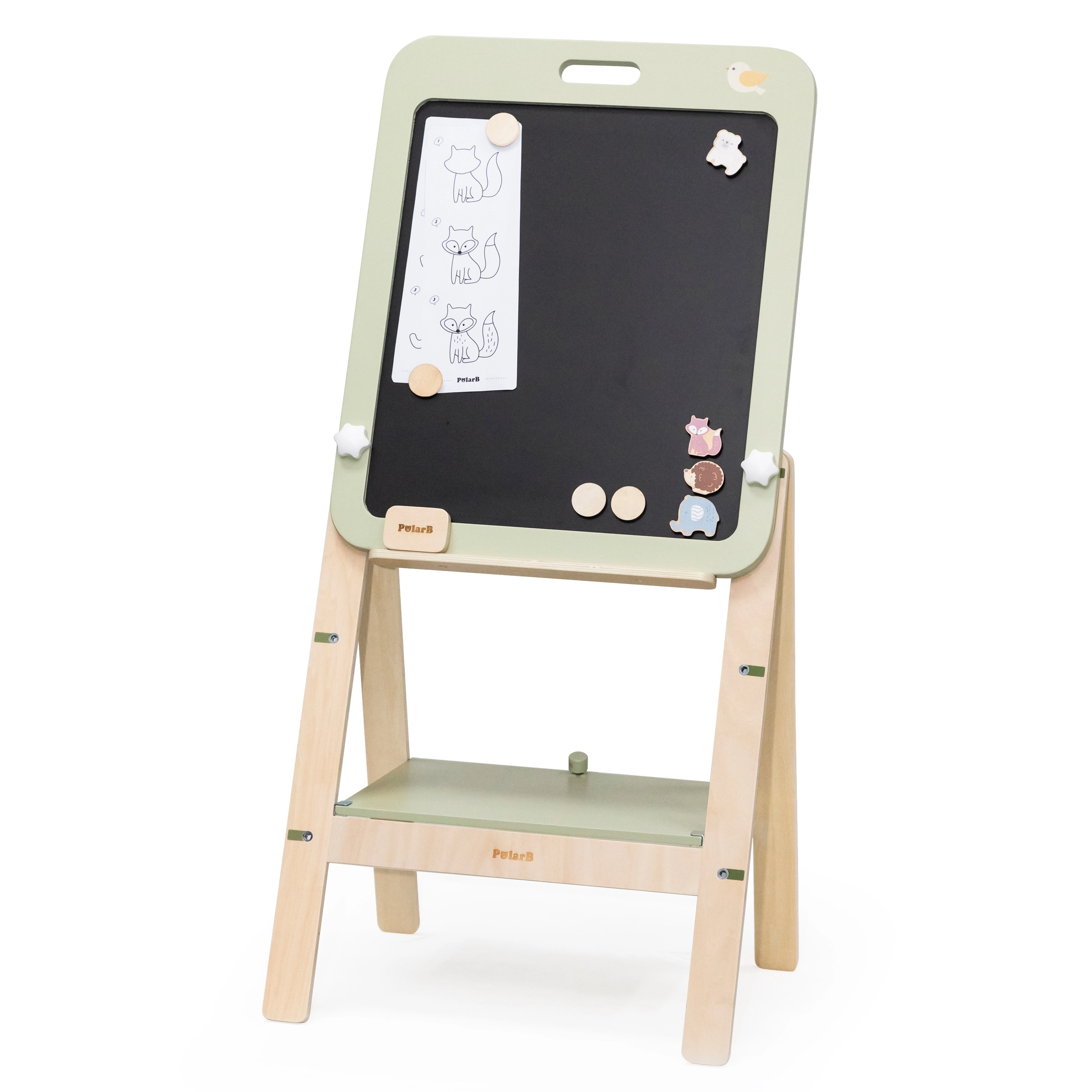 Medinė auganti PolarB lenta suteikia vaikams smagią ir edukacinę patirtį. Lenta yra dvipusė, siūlanti juodą paviršių kreidei ir baltą magnetinį sausam nuvalymui. Dėl trijų aukščio reguliavimo lygių ji idealiai tinka augantiems vaikams. Pasibaigus žaidimui, lentą galima lengvai nuimti ir pakabinti ant sienos kaip dekoraciją.