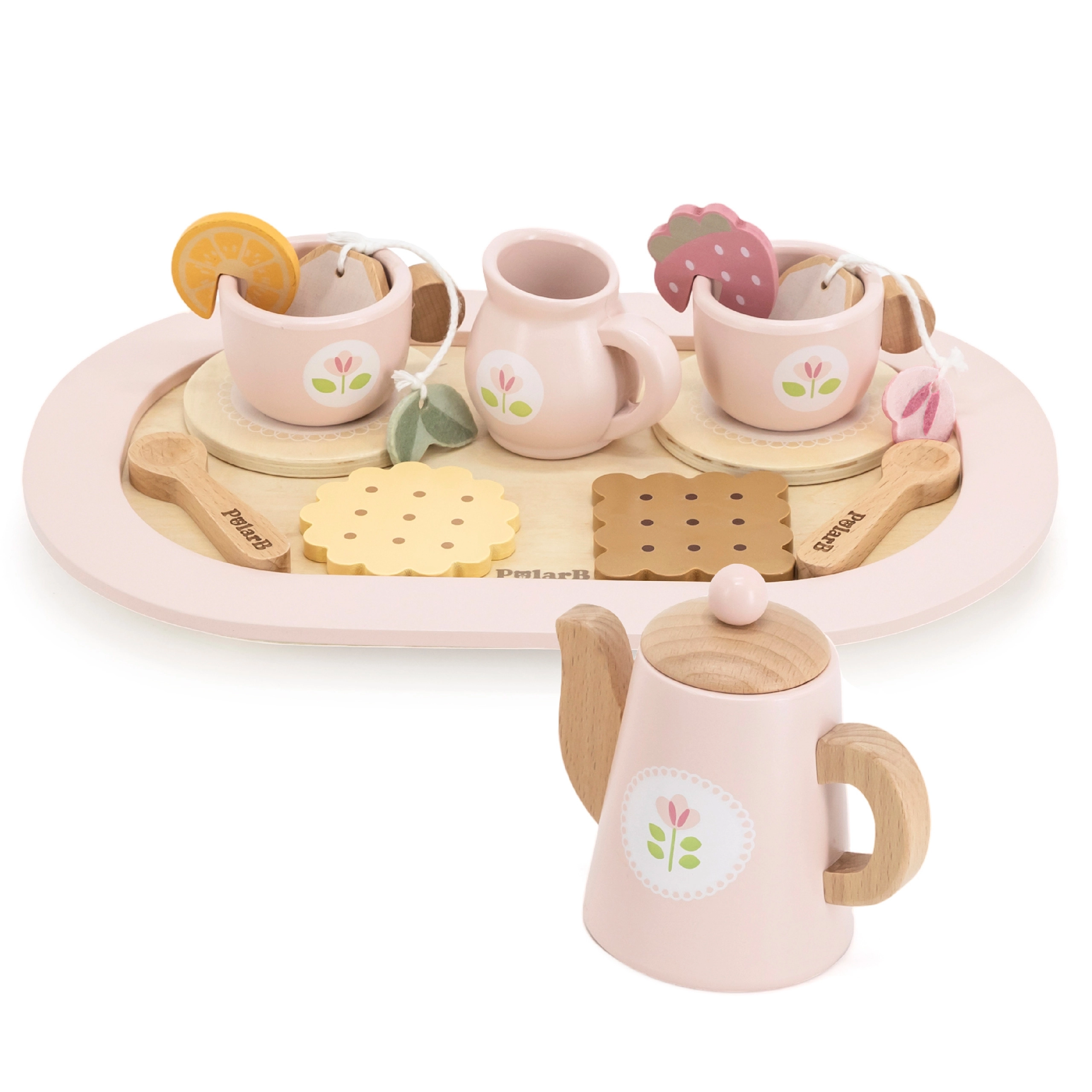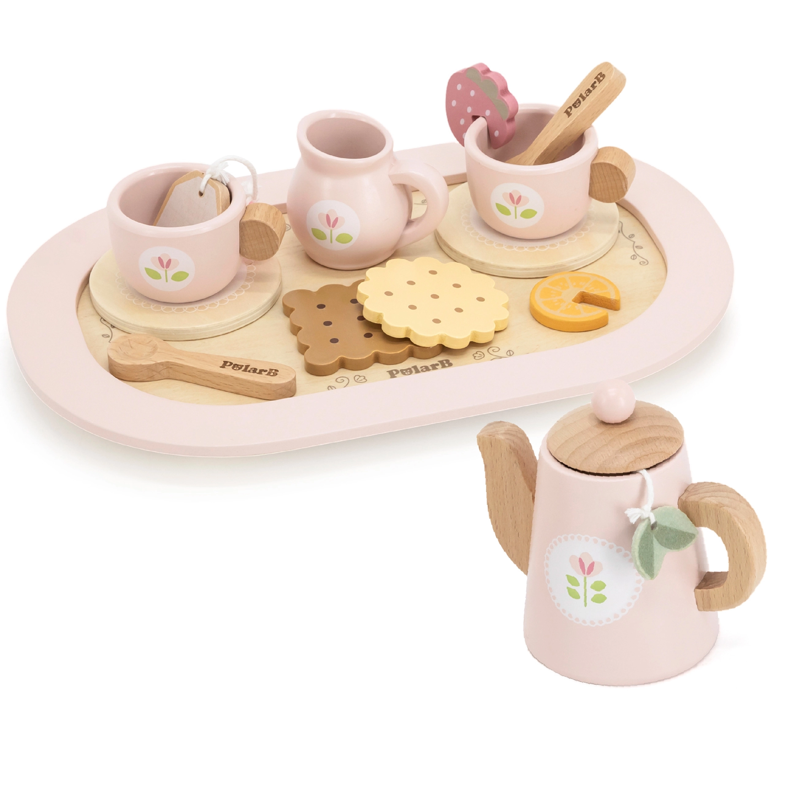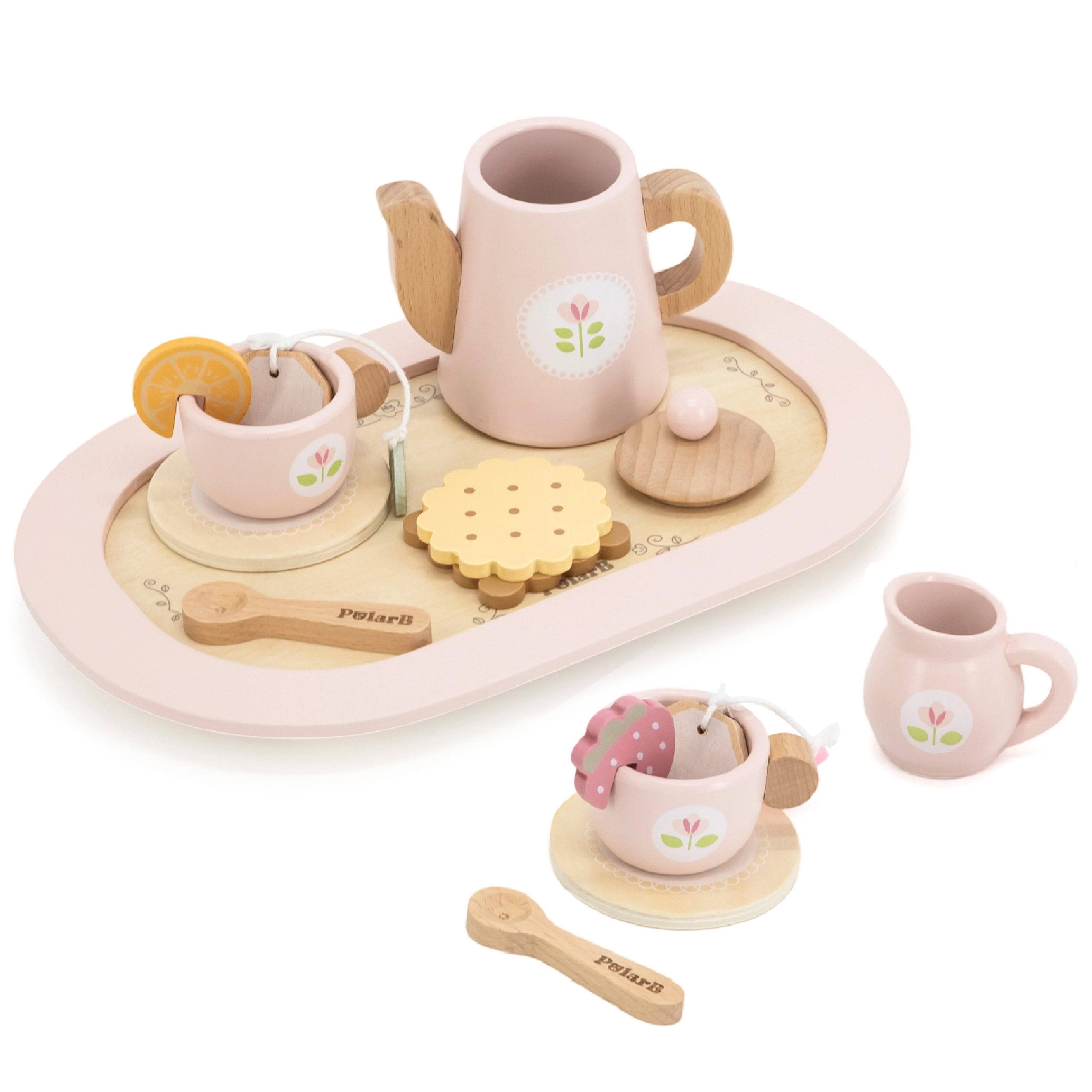 Šis elegantiškas vaikų arbatos rinkinys iš POLARB serijos sukurtas jaukiomis pastelinėmis spalvomis su gėlių motyvais ir kviečia į bendrus arbatos vakarėlius. Mediena maloni liesti, atskiros detalės puikiai telpa vaiko rankoje ir atlaiko kasdienį žaidimą. Vaikai lavina smulkiąją motoriką, mokosi mandagumo ir bendradarbiavimo, o vaidmenų žaidimuose plėtoja vaizduotę.