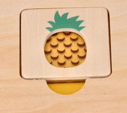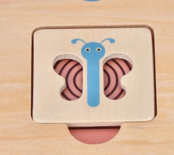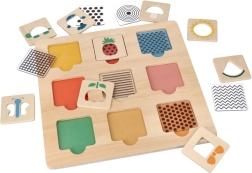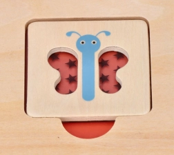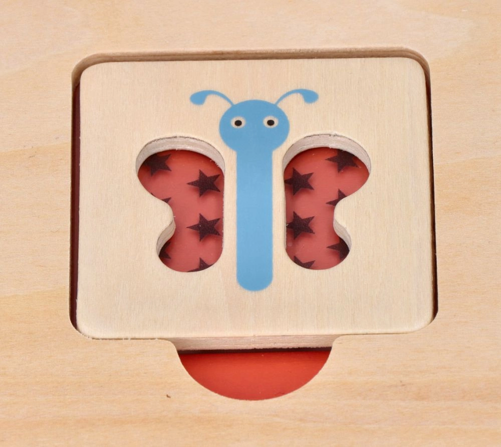 Ši medinė edukacinė dėlionė teikia vaikams atradimo džiaugsmą. Spalvingi motyvai (gyvūnai, gėlės ir kiti raštai) kviečia dėlioti ir stumdyti elementus, taip natūraliai lavinant akių–rankų koordinaciją ir kantrybę. Dėl tvirtos medinės lentos ir lengvai sugriebiamos detalių formos žaidimas yra intuityvus ir saugus.