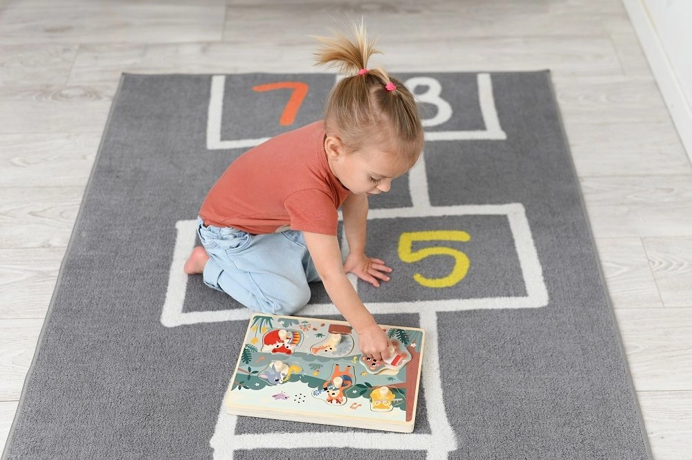 Kokybiška medinė lenta su spalvingomis iliustracijomis ir glotniais kraštais yra patvari ir saugi. Puikiai tinka žaisti tiek savarankiškai, tiek kartu – ant grindų ar kilimo.