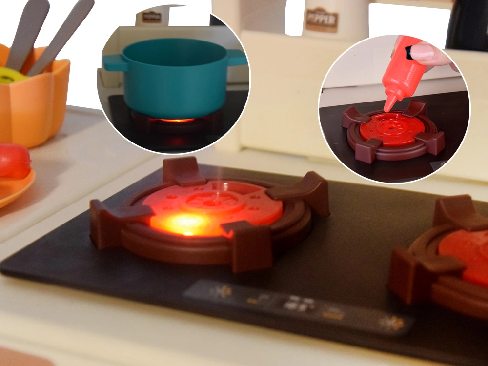 - Garai, šviesos ir garsai nuo kaitlentės – tikroviškam burbuliavimo ir virimo efektui.