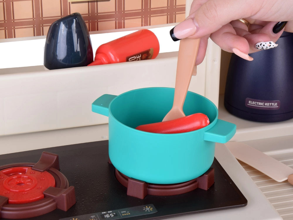 Gausus 55 priedų rinkinys apima indus, stalo įrankius ir maistą neribotiems virimo scenarijams. Virtuvėlė – idealus dovanos pasirinkimas vaikams nuo 3 metų; dėl stabilios konstrukcijos ir apgalvotų detalių ji suteiks valandų valandas saugaus ir kūrybiško žaidimo.
