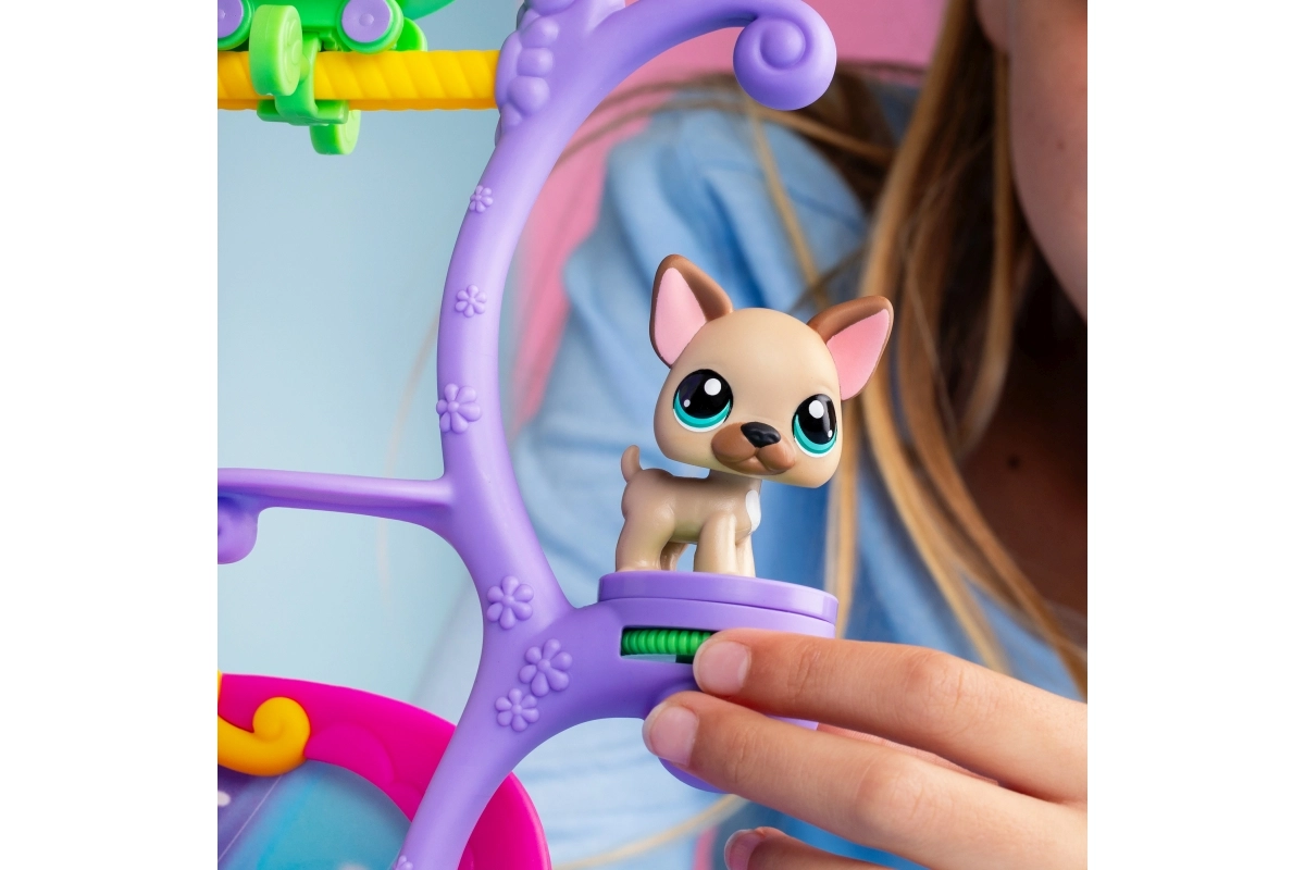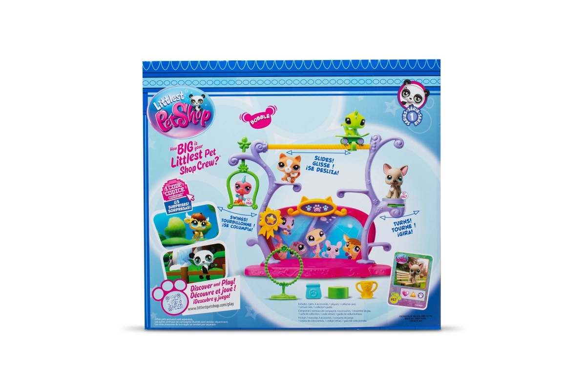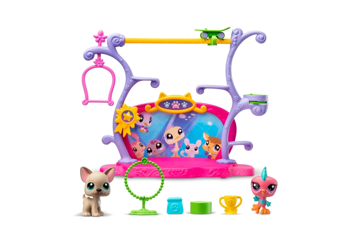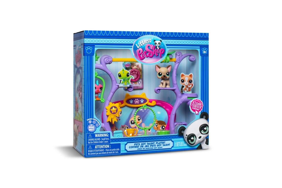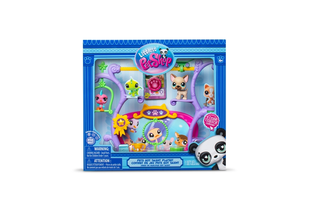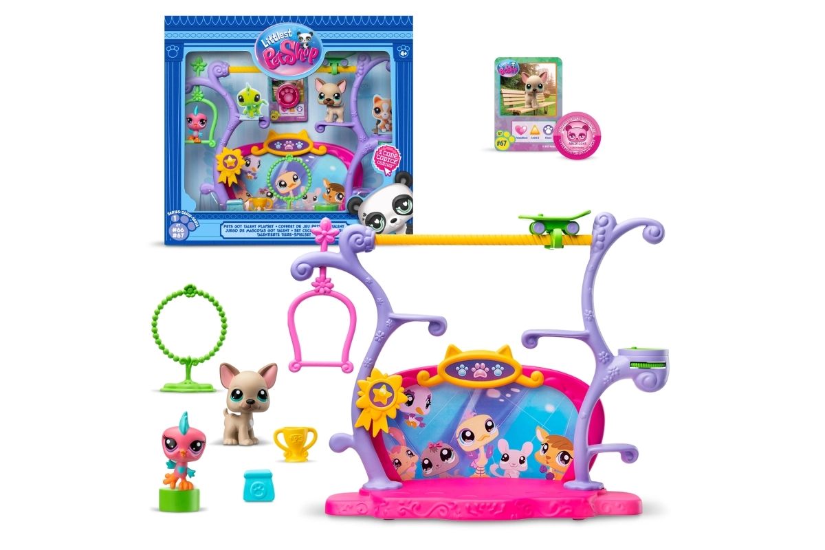 Sveikiname visus mėgstamų Littlest Pet Shop gyvūnėlių gerbėjus! Atvyksta 7-oji karta su daugiau nei 65 naujais draugais kolekcijoje. Šiame žaidimų rinkinyje yra prancūzų buldogas ir paukštelis, pasiruošę talentų šou. Prisijunkite prie virtualaus Littlest Pet Shop pasaulio naudodami specialų kodą, kuris atrakina išskirtines figūrėles ir staigmenas.