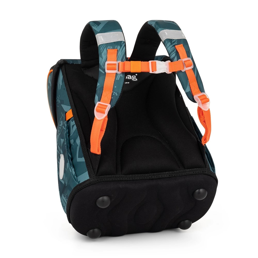 Saugumą didina atšvaitiniai elementai ir metalinė sagtis su atšvaitu. Tvirtas dugnas saugo turinį nuo apvirtimo ir išbyrėjimo, papildomi kabliukai leidžia geriau pritvirtinti petnešas. Dėl plačių paminkštintų petnešų portfelis tolygiai paskirsto svorį ir saugo vaikų pečius.