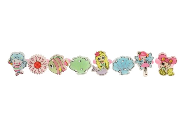 Žiedeliai su jūrų pasaulio motyvais, įskaitant undines, žuvytes ir kriaukles, suteikia džiaugsmo ir pramogų.