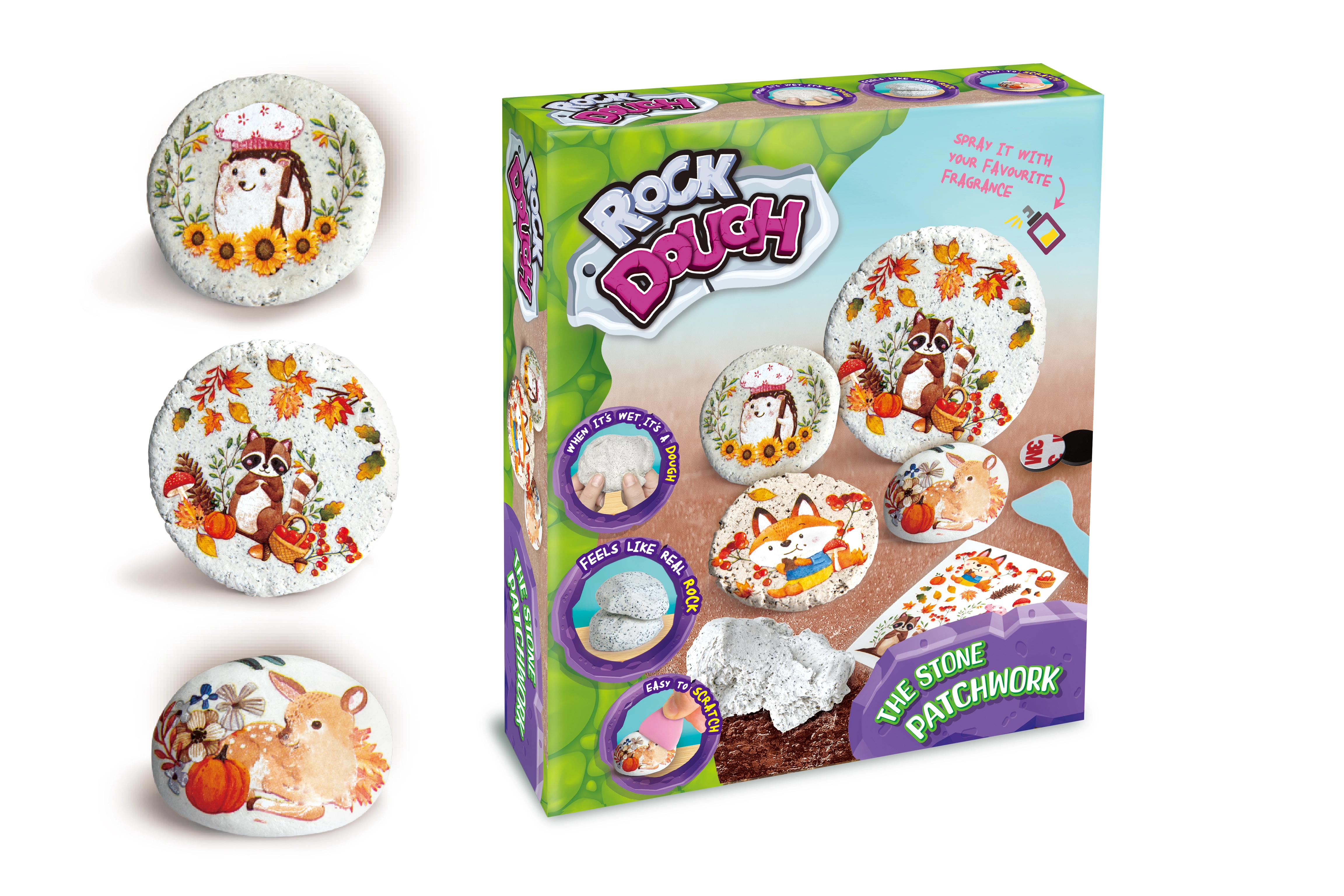 Pakuotėje rasi viską, ko reikia – nuo masės ir magnetinių spaustukų iki lipdukų ir gremžtuko. Procesas paprastas ir aiškus dėl iliustruotų instrukcijų, todėl kūryba džiugins ir pradedančiuosius, ir pažengusius.