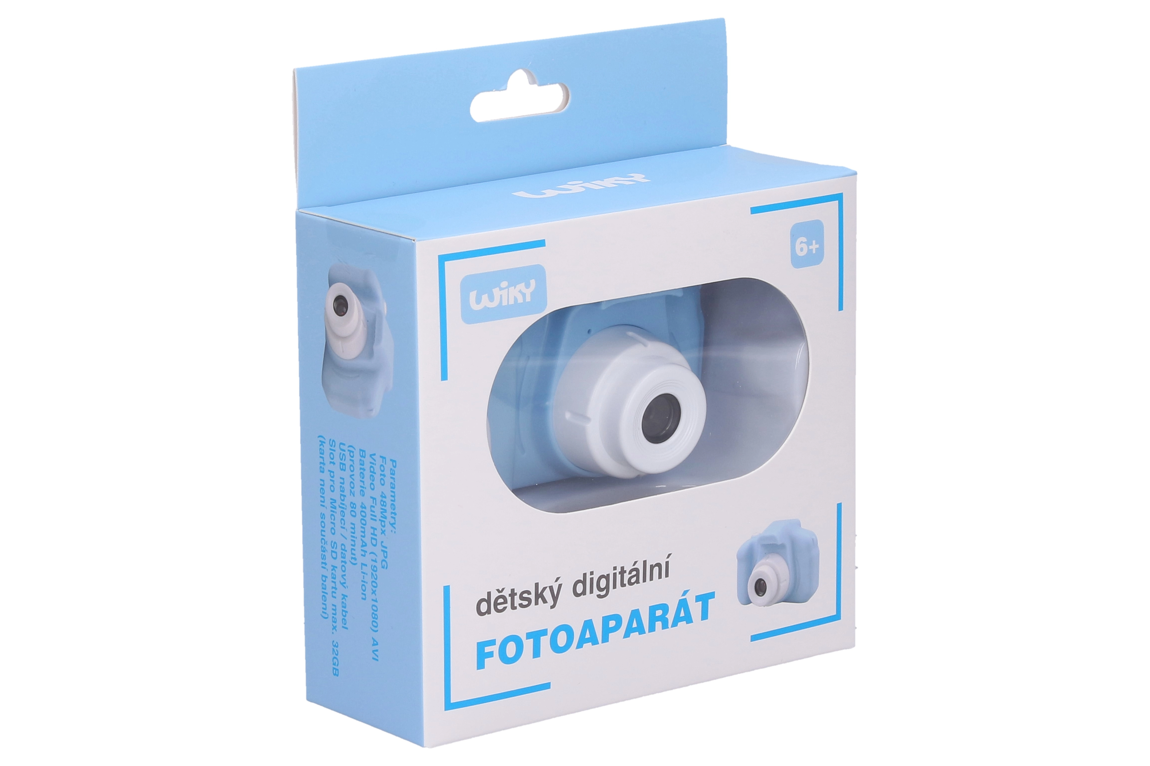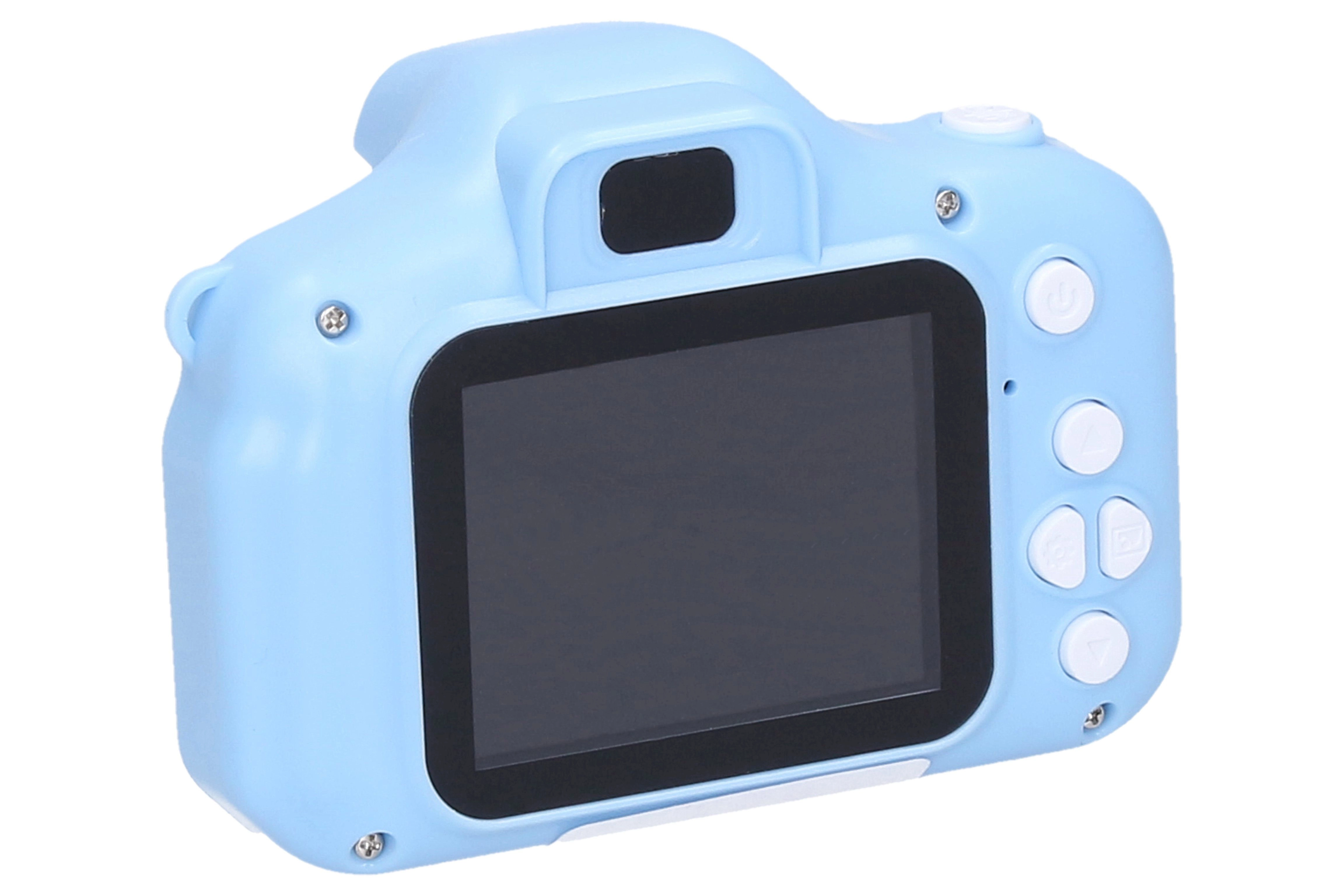 Įamžinkite vaikų akimirkas su šiuo lengvai valdomu, mėlynu vaikams skirtu fotoaparatu. Jis siūlo 48 Mpx nuotraukas, Full HD (1920×1080) vaizdo įrašus, aiškų 2,0" ekraną, linksmus filtrus ir rėmelius bei įmontuotus žaidimus. Lengvas ir patvarus dizainas puikiai tinka mažoms rankoms, yra laikmatis, skaitmeninis priartinimas ir datos/laiko įrašas. Pridedamas USB laidas ir dirželis.