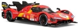 Šis detalus die-cast modelis ištikimai atkuria LMH kategorijos prototipą Ferrari 499P, triumfavusį legendinėse 24 val. Le Mano 2023 lenktynėse. Realistiškos proporcijos, ryškios kėbulo linijos ir autentiški lenktyniniai elementai daro šį modelį patrauklia vitrinine ekspozicija.