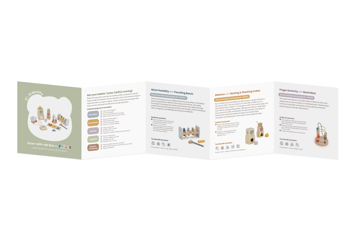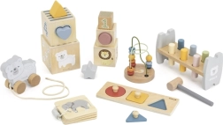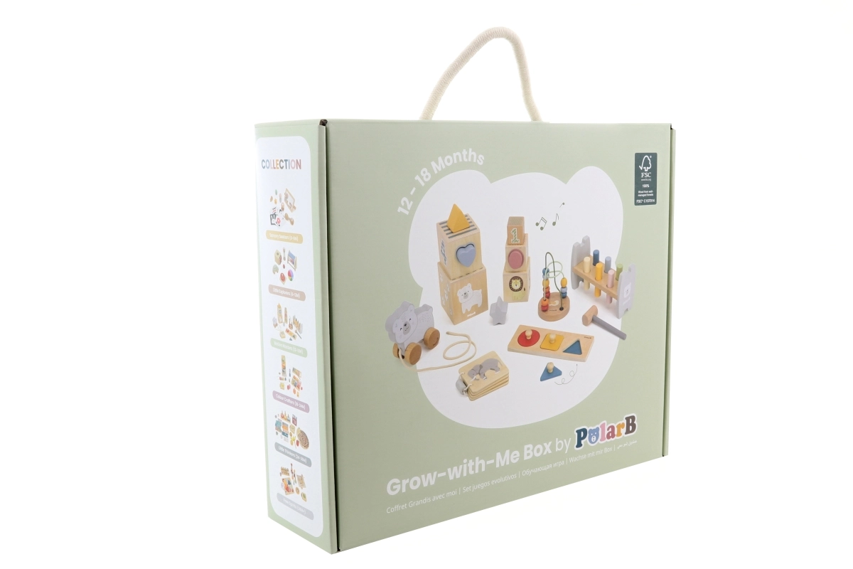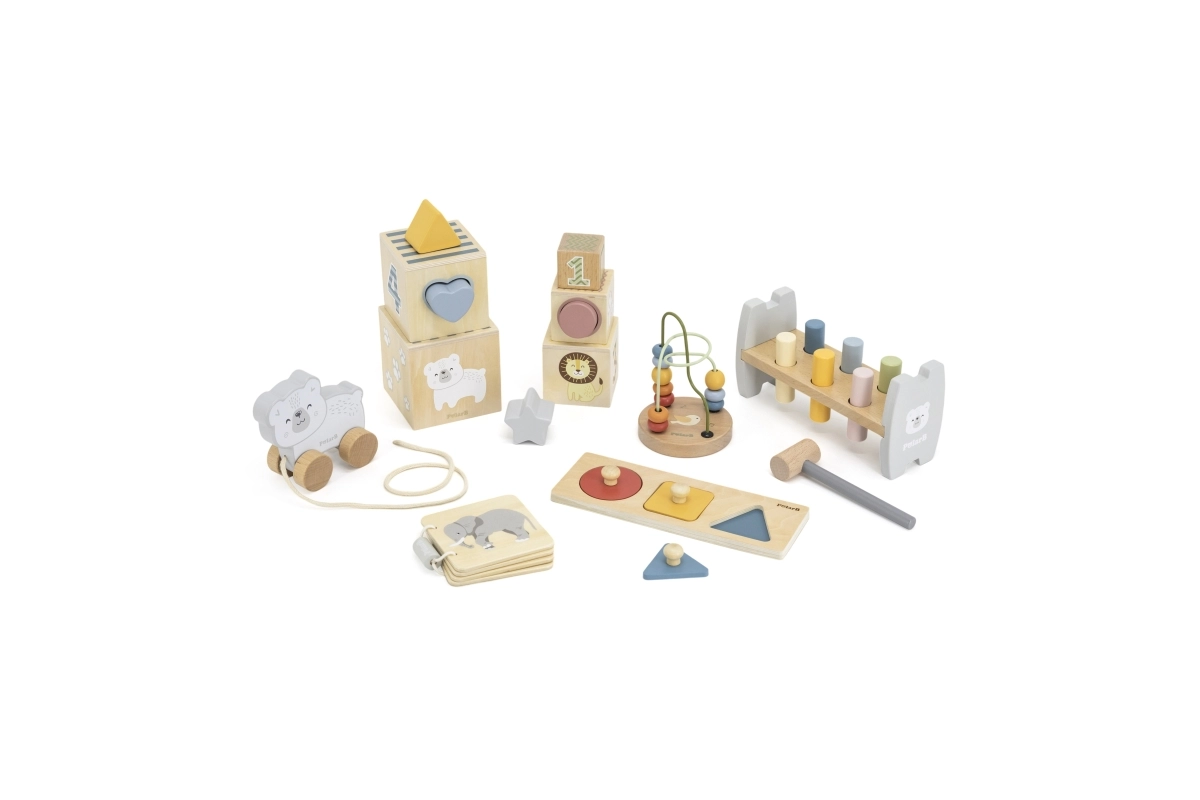 Šis apgalvotas PolarB medinių žaislų rinkinys 12–18 mėn. amžiui žaismingai ugdo svarbiausius įgūdžius. Vaikai treniruojasi sugnybimą ir suėmimą, judesių tikslumą bei loginį mąstymą, kartu mokydamiesi atskirti spalvas, formas ir dydžius. Švelnios pastelinės spalvos ir mieli gyvūnėlių motyvai natūraliai skatina smalsumą.