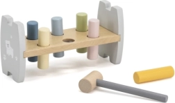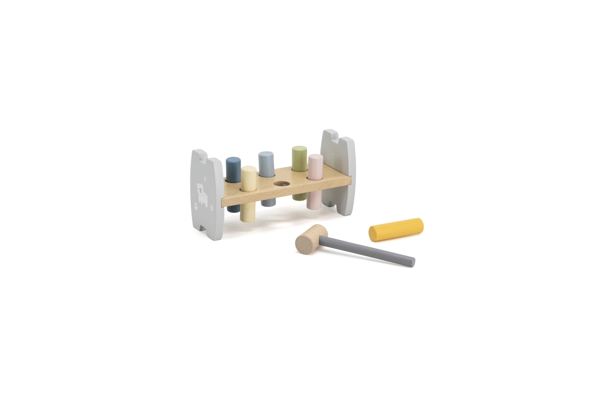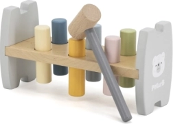 Spalvoti kaiščiai ir medinis plaktukas lavina smūgio tikslumą, rankų–akių koordinaciją ir riešo lankstumą – idealiai tinka pirmiesiems motorikos pasiekimams.