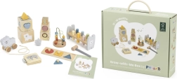 Saugus atlikimas su glotniais kraštais, patvarios medinės detalės ir intuityvios veiklos daro rinkinį puikiu pasirinkimu kasdieniam žaidimui ir kaip dovaną. Patogi dėžutė su rankenėle palengvina nešiojimą ir laikymą.