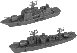 - povandeninis laivas su šaudyklu, 3 naikintuvai, karo laivas, aprūpinimo laivas, lėktuvnešis, 9 plastikinės bombos