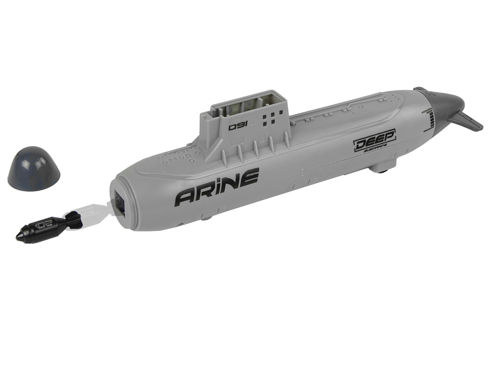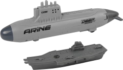 Pagrindinis akcentas – povandeninis laivas su mechanine šaudykle ir ratukais sklandžiam judėjimui grindimis. Iš viršaus įdėkite sviedinį, patraukite galinę dalį ir iššaukite – saugios plastikinės „bombos“ suteikia žaidimui veiksmo elementą. Flotilę papildo karo laivas, aprūpinimo laivas ir lėktuvnešis, o trys naikintuvai suteiks oro paramą kiekvienai misijai.