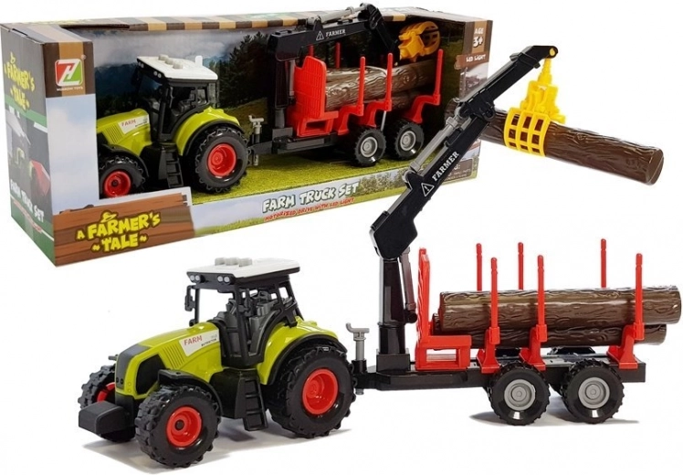 Detaliai sukurtas rinkinys mažiesiems žemės ūkio ir miškininkystės gerbėjams: traktorius su miško priekaba, rąstais ir pasukamu kranu. Siūlo šviesos efektus, tris garso režimus, 360° pasukamą kraną ir ištraukiamas atramas. Aukšta kokybė, CE sertifikatas ir atitiktis EN 71 standartui užtikrina saugų ir smagų žaidimą vaikams nuo 3 metų.