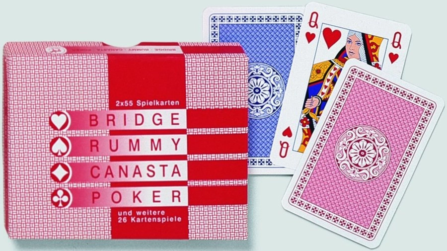 Universalus klasikinio prancūziško tipo kortų rinkinys, idealiai tinkantis kanastai, džokeriui, bridžui, pokeriui ir pasiansui. Pakuotėje rasite 2 × 55 kortų su džokeriais, tinkančias ir šeimos vakarams, ir turnyriniam žaidimui.