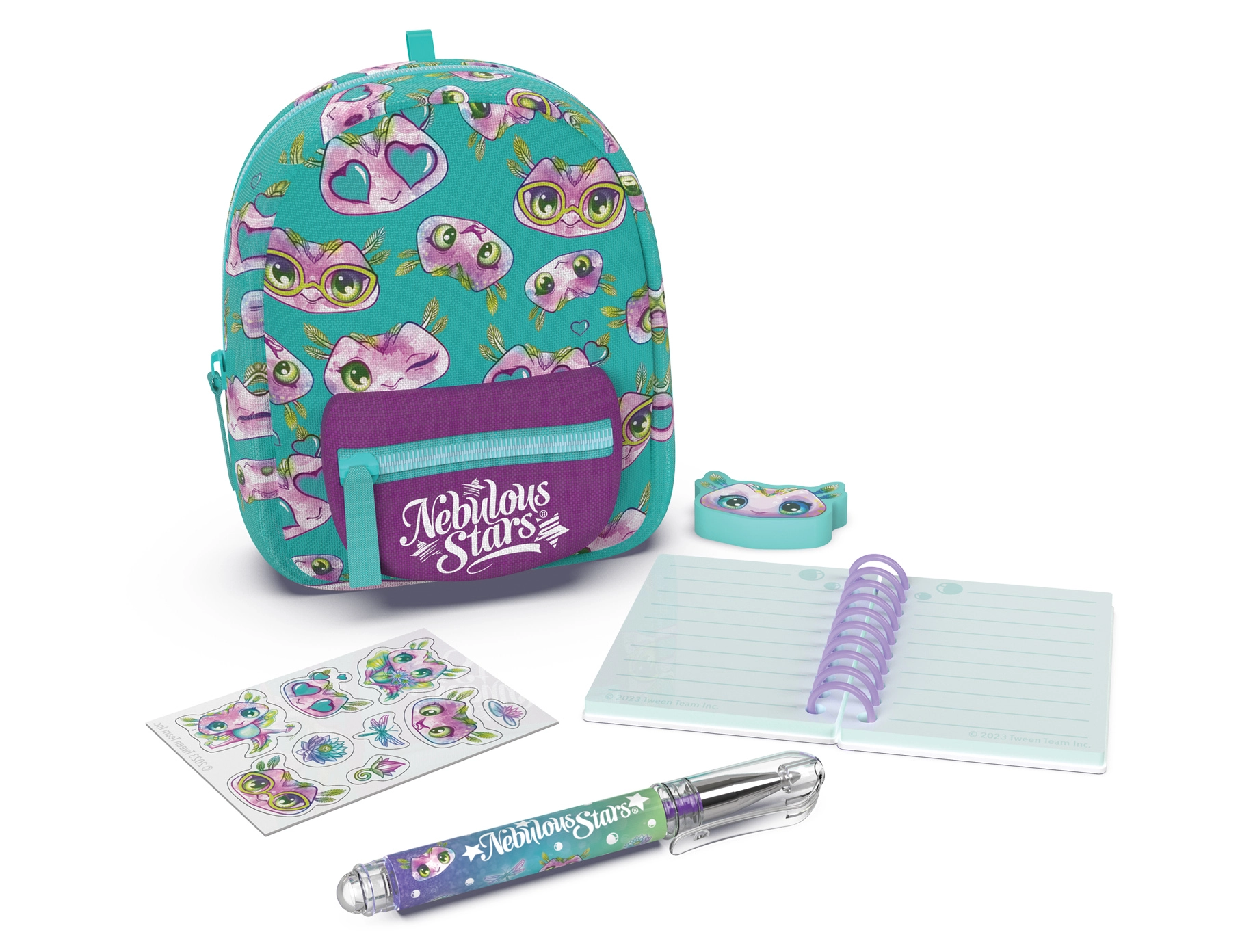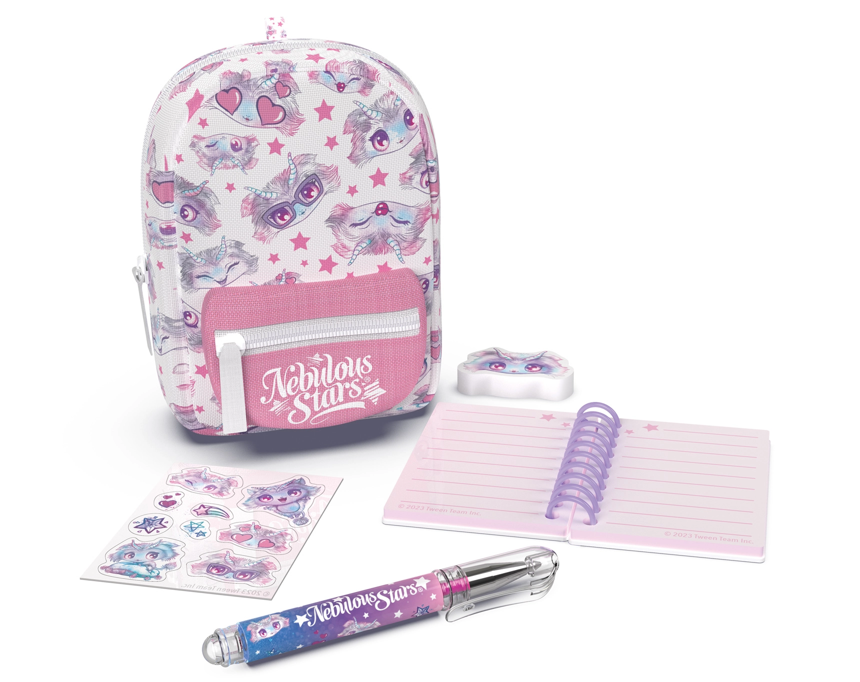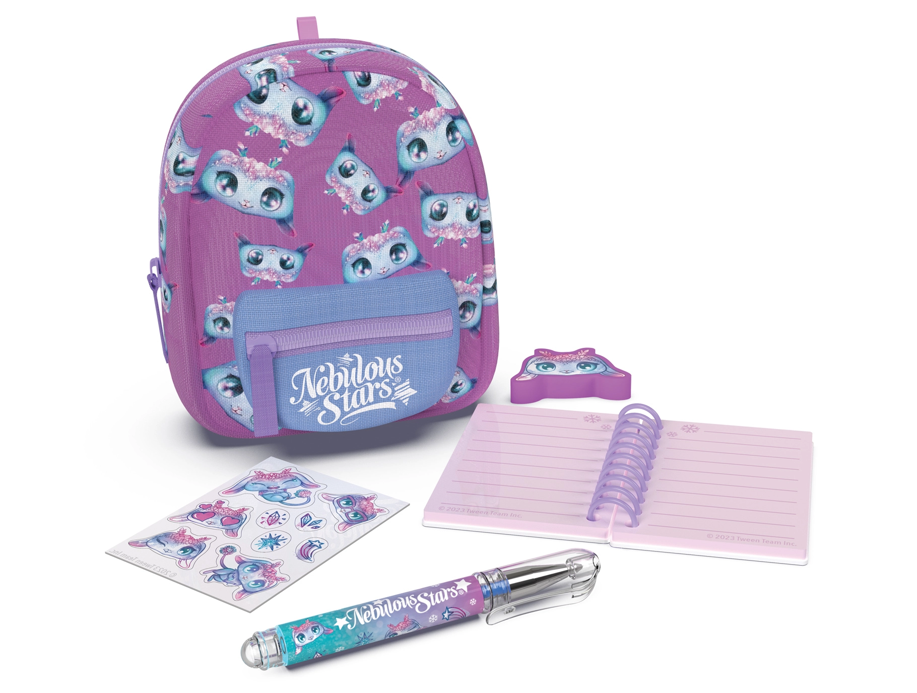 Stilinga mini kuprinė NEBULOUS STARS su raštinės reikmenų rinkiniu idealiai tinka mažiesiems kūrybos mėgėjams ir kelionėms. Kompaktiški 9 × 6 × 11 cm matmenys slepia viską, ko reikia: liniuotą užrašų knygelę, rašiklį, trintuką, lipdukus ir mielą pakabuką. Yra 3 spalvinės versijos – mėlyna, balta ir violetinė.