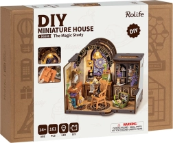 Leiskitės į burtų ir magijos pasaulį su šiuo miniatiūriniu burtininko dirbtuvės modeliu masteliu 1:18. Kiekviena detalė kruopščiai sukurta – nuo knygų ir popierinių ritinių iki krištolinio rutulio ir paslaptingo lagamino. Jaukus LED apšvietimas suteikia erdvei magišką prieskonį.