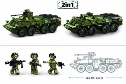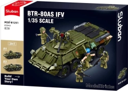 Sluban BTR-80AS rinkinys suteikia galimybę surinkti detalų karinio automobilio modelį net dviem variantais. Derinamumas su kitais konstruktoriais reiškia, kad rinkinius galima plėsti ir kurti didesnius statybos projektus. Kiekviename rinkinyje yra 619 detalių ir 4 figūrėlės, kas suteikia valandų valandas pramogų ir kūrybos.