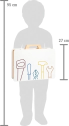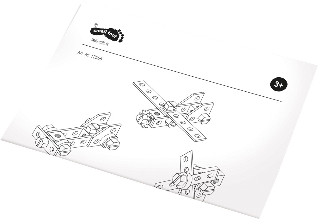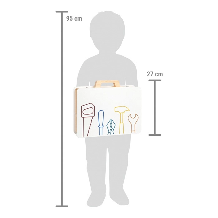 Vaikiškas small foot Workshop įrankių lagaminėlis – kokybiškas medinis rinkinys mažiesiems meistrams. Viduje rasite tikroviškus vaikiškus įrankius ir platų detalių asortimentą sukimui ir konstravimui. Vaikai gali surinkti lenktyninį automobilį, sraigtasparnį, vėjo malūną, lėktuvą ir kitus kūrinius – idealiai tinka kūrybiškumui ir techniniam mąstymui ugdyti.
