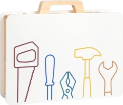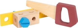 Plaktukas, raktas, atsuktuvas, replės ir pjūklas iš kokybiško medžio skatina vaidmenų žaidimus ir linksmai moko pagrindinių įgūdžių.