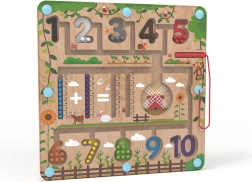 Magnetinė žaidimų lenta Matematika 2Kids Toys – ideali priemonė pirmiesiems žingsniams į skaičių pasaulį. Spalvoti rutuliukai, skaičių takeliai ir ūkio tematikos iliustracijos natūraliai skatina vaikus atrasti skaičiavimą, rūšiavimą ir lyginimą. Tvirtas skaidrus dangtis visus elementus laiko viduje, todėl žaidimas saugus ir tvarkingas.
