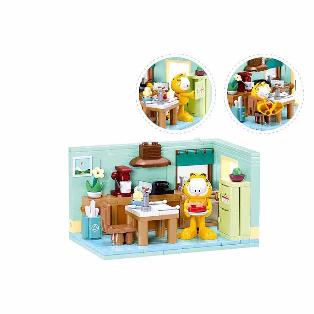 Lengvai derinkite su LEGO, Cobi ir Mega Bloks. Sujunkite virtuvę su kitomis scenomis ir kurkite didesnį Garfieldo pasaulį.