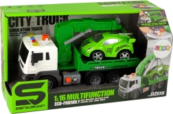 Be vilkimo automobilio rinkinyje yra ir sportinis automobilis, paruoštas taisymui jūsų vaikų dirbtuvėse. Vilkimo automobilio matmenys: 38 cm x 13 cm x 16 cm, sportinės mašinėlės matmenys: 18 cm x 8 cm x 7 cm. Žaislas maitinamas trimis AG13 baterijomis (įtrauktos į pakuotę) ir skirtas vaikams nuo 3 metų. Atitinka CE ir EN 71 standartus.