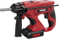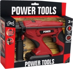 Linksmas vaikiškas gręžtuvas raudonos spalvos su keiči mais grąžtais, maitinamas baterijomis, suteikia realistišką mažojo meistro žaidimą. Paspaudus gaiduką įsijungia garsai ir šviesa, saugi plastikinė konstrukcija lavina smulkiąją motoriką ir loginį mąstymą. Maitinimas 3× 1,5 V AA (baterijos nepridedamos), tinka nuo 3 metų, CE sertifikatas.