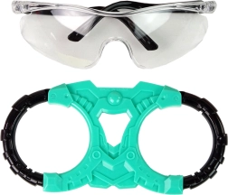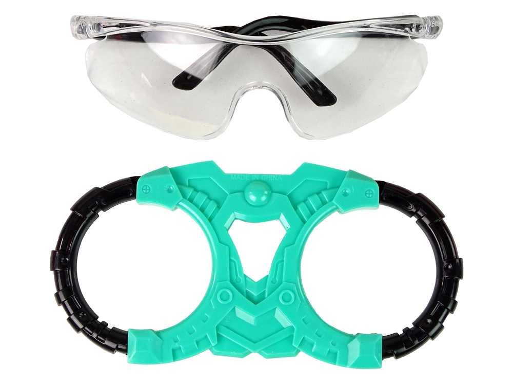 Permatomi akiniai saugo akis žaidimo metu ir suteikia visam rinkiniui futuristinę išvaizdą.