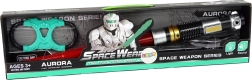Šis išskleidžiamas šviesos kardas pasiekia iki 80 cm ilgį ir įjungus skleidžia realistiškus garsus bei šviečia balta šviesa per turkio vamzdelį. Kartu su apsauginiais akiniais juodai–sidabrinai–turkio dizaine tai – puiki įranga vaikų fantazijai ir galaktinėms misijoms.
