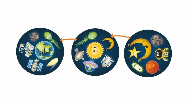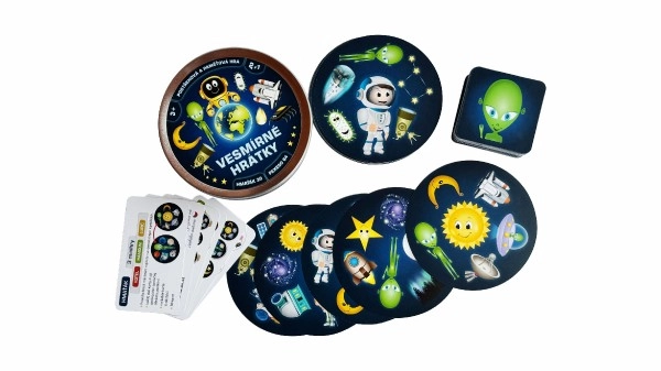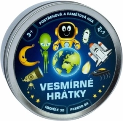 Kosminiai žaidimai 2 viename suteikia dvigubai daugiau pramogų kompaktoje pakuotėje. Dviejų populiarių žaidimų – Grabukas ir Atminties poros (Pexeso) – dėka vaikai žaismingai lavina įžvalgumą, susikaupimą ir atmintį. Gražios kosminės iliustracijos patraukia iš pirmo žvilgsnio, o paprastas taisykles lengvai supras net patys mažiausi.