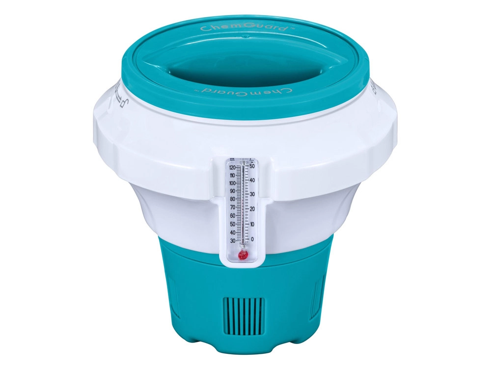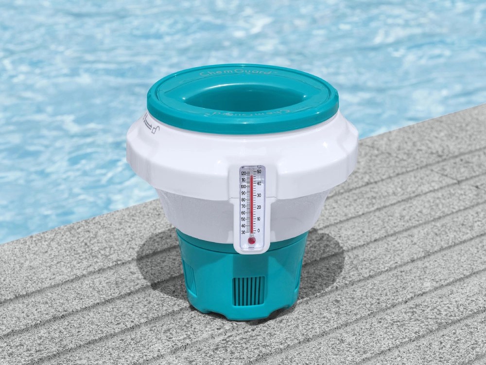 Išlaikykite baseino ir sūkurinės vonios vandenį tobulai švarų ir saugų. Plūduriuojantis chemijos dozatorius BESTWAY CHEMGUARD su integruotu termometru leidžia tiksliai dozuoti chlorą arba bromą, turi reguliuojamą išleidimą, vaikišką saugiklį ir lengvai skaitomą temperatūrą °C ir °F.