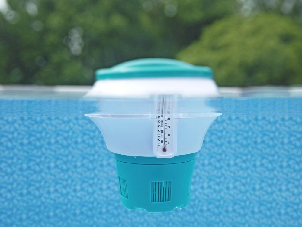 plūduriuojantis chemijos dozatorius su termometru