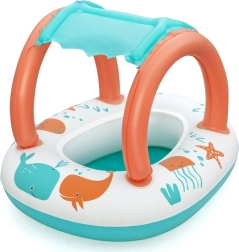 Paverskite pirmuosius vaiko vandens nuotykius džiaugsmu ir saugumu. Ši vaikiška pripučiama BESTWAY valtis su nuimamu stogeliu suteikia apsaugą nuo saulės, stabilų sėdėjimą ir patvarią PVC konstrukciją. Idealiai tinka baseinui, ežerui ir jūrai vaikams nuo 3 metų ir iki 30 kg.