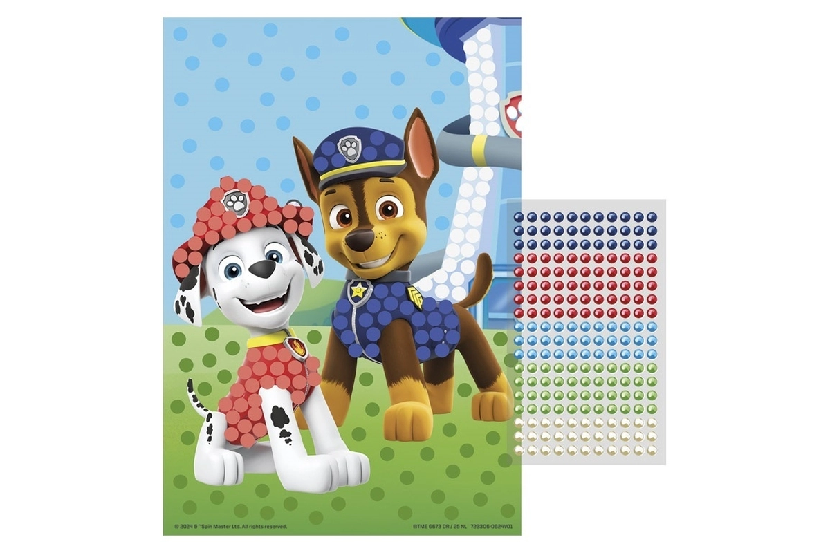 Karoliukų paveikslėlis su mėgstamais ŠUNYČIŲ PATRULIO herojais – puikus kūrybinis rinkinys vaikams. Naudodami lipniuosius karoliukus vaikai lengvai užpildo atspausdintą pagrindą ir susikuria savo mozaiką. Procesas paprastas, smagus ir skatina susikaupimą bei kantrybę.